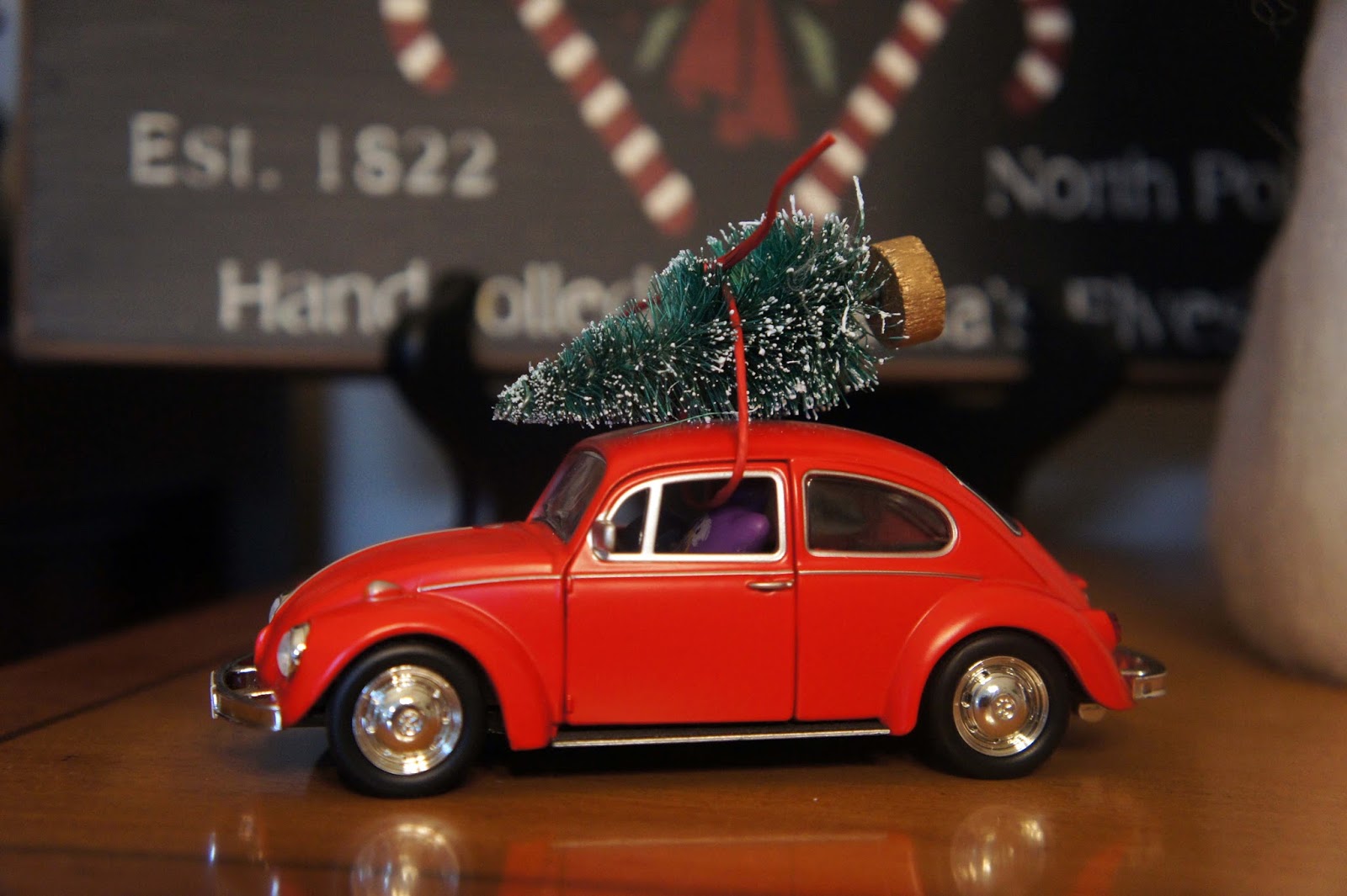 red VW beetle and tied another small bottlebrush tree to the top of that. Can